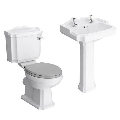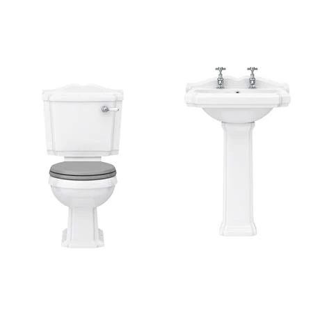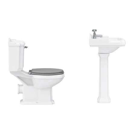 Manufactured from durable high-grade china, Appleby’s Traditional Four-Piece Bathroom Suite has a refined period look. This coordinating set includes a full pedestal basin, close-coupled cistern with WC pan and a polished ceramic lever handle. The toilet seat is made from MDF wood and comes in a range of colours to complement your décor. Practical soft close and quick-release mechanisms make for highly convenient use and easy cleaning.