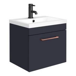 Arezzo Blue Wall Hung Sink Vanity Unit + Toilet Package with Rose Gold Handle