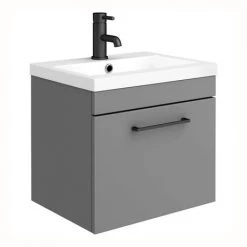 Arezzo Grey Wall Hung Sink Vanity Unit + Toilet Package with Matt Black Handle
