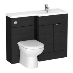 Arezzo Grey Floor Standing Vanity Unit, Tall Cabinet + Toilet Pack with Black Handles