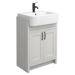Chatsworth Traditional Grey Semi-Recessed Vanity Unit w. Matt Black Handles + Toilet Package