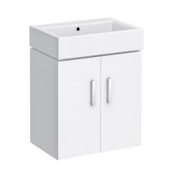 Venice Gloss White Vanity Unit Cloakroom Suite w. Chrome Handle