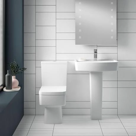 The Bliss modern double ended curved free-standing bath suite includes everything you need for creating a stylish contemporary bathroom in your home, with a modern square toilet and basin set with a luxury modern double skinned acrylic double ended free-standing bath.