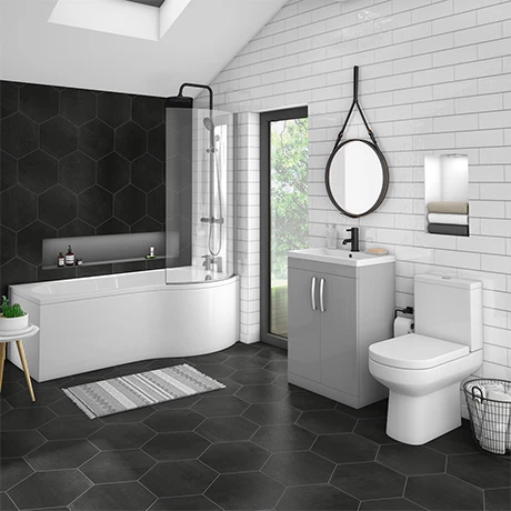 The Brooklyn Grey Mist bathroom suite with B-Shaped Bath includes everything you need for creating a stylish contemporary bathroom in your home. Please note, optional bath end panel (BBTEP) sold separately.