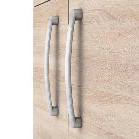 This high quality Natural Oak textured wood effect vanity unit is supplied with a smooth white gloss vitreous china basin. All units are provided with quality matt chrome handles.