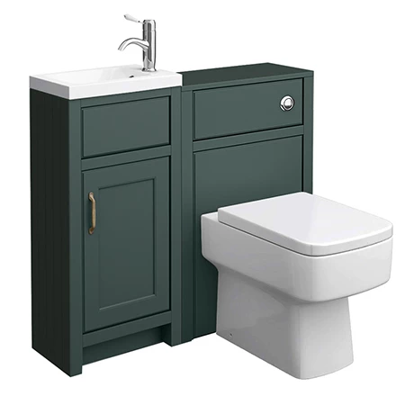 The Chatsworth traditional Green back to wall cloakroom suite, Victorian inspired design with a modern twist. The Chatsworth range of charming bathroom furniture features classic styling with a satin Green finish and tongue-and-groove side panelling. Manufactured to a high standard, the inspired Chatsworth range of luxury furniture with it’s clean minimalist design and muted palette blends beautifully with any style of bathroom.