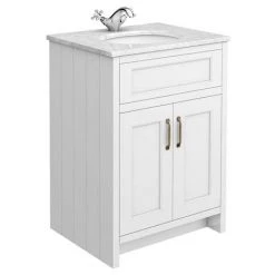 The eye-catching Chatsworth semi recessed vanity unit and toilet package, features eye catching matt black handles and a Victorian inspired design with a modern twist.