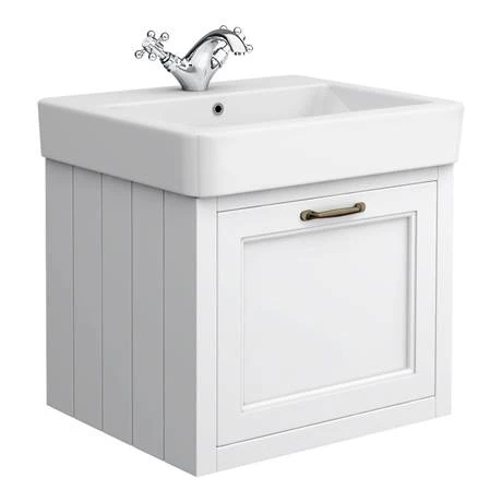 A high-quality traditional bathroom suite featuring a traditional low level toilet and a 560mm wide wall hung white vanity unit with it’s classic styling has been designed to match the Chatsworth range of bathroom furniture. Victorian inspired design with a modern twist.