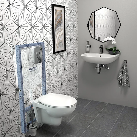 The Solido Bau WC pack is a complete set consisting of support frame and cistern, dual flush plate, wall hung pan and soft close seat. The steel support frame gives you the freedom to design your ultimate bathroom by providing a secure and quick method of installing WCs. Each frame comes pre-assembled with sanitary ware fixings and is subject to stringent testing.
