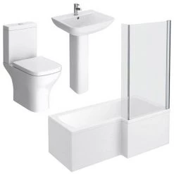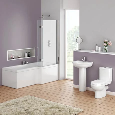 A modern Ivo bathroom suite, bring modern stylish design into your bathroom. Features a contemporary 1700mm square shower bath, ceramic toilet and basin with full pedestal.