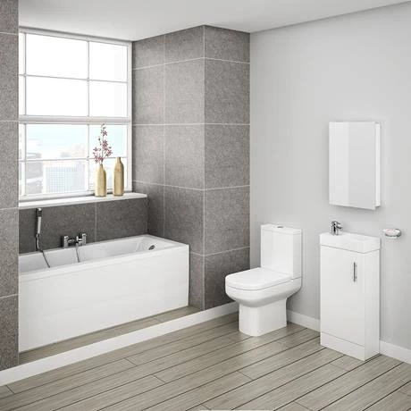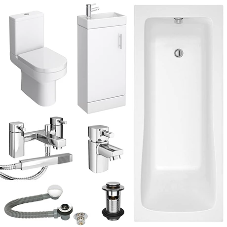 The Milan minimalist compact complete bathroom package includes everything you need for creating a stylish contemporary bathroom in your home.