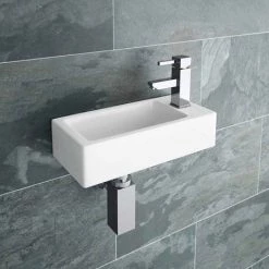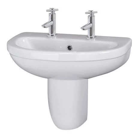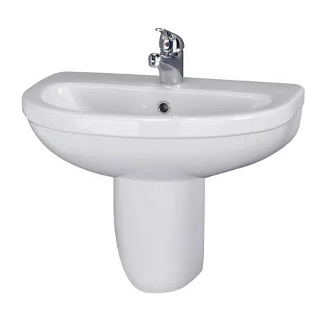 The wall mounted basin is supplied with a semi pedestal which will conceal unsightly pipework from view and leaves the floor beneath the basin visible creating the illusion of space, ideal for cloakrooms, en-suites or smaller bathrooms.