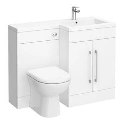 The stylish Caledon 4-Piece Modern Cloakroom Suite from the Nuie comfort collection – features a higher toilet designed to put less pressure on your knees & back. Toilet comprises of close-coupled raised toilet pan, WRAS approved cistern and soft close seat.