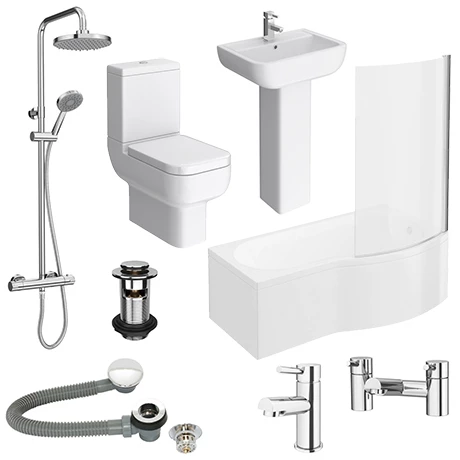 The Pro 600 B Shaped complete bathroom package includes everything you need for creating a stylish contemporary bathroom in your home. Please note, optional bath end panel (BBTEP) sold separately.