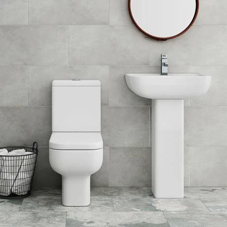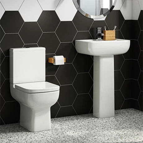 Kit out your en suite or cloakroom with the Pro 600 Modern Bathroom Suite. With a modest 600mm projection, the loo makes the most of snug spaces. A ceramic pedestal sink, with a short projection but a generously deep bowl, forms the other half of this modern cloakroom bathroom suite. Its short projection toilet even has a practical dual flush system, helping you reduce water use – you can flush with three litres rather than six for liquid waste. For a designer look, consider topping the sink with a Monza Waterfall Cloakroom Mini Basin Tap.