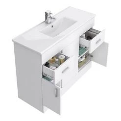 Toreno 1100mm Gloss White Vanity Unit Bathroom Suite – Depth 400/200mm
