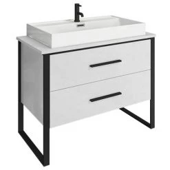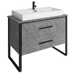Arezzo 1000 Concrete-Effect Matt Black Framed Vanity Unit + Square Toilet