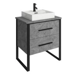 Arezzo 800 Concrete-Effect Matt Black Framed Vanity Unit + Square Toilet
